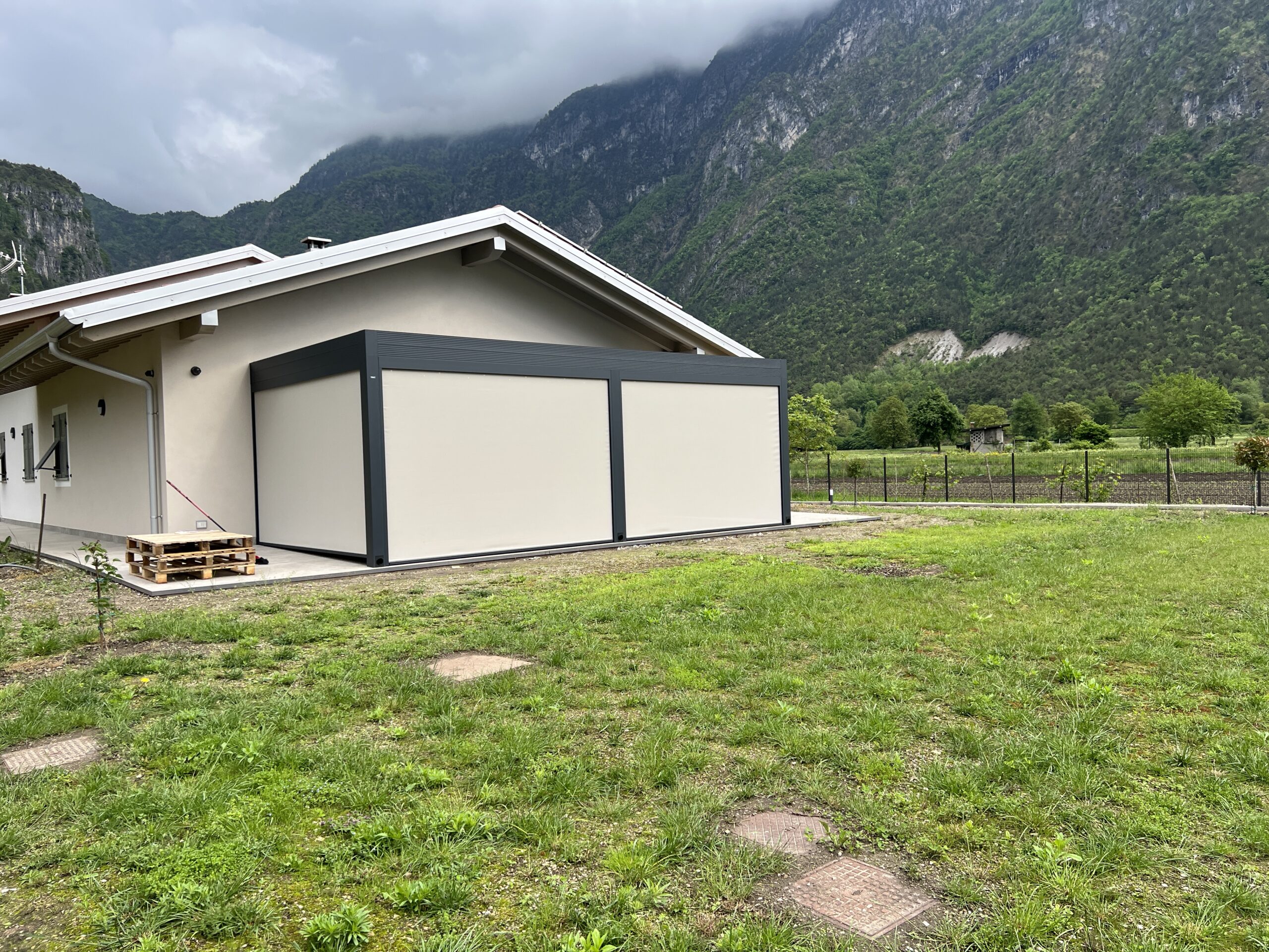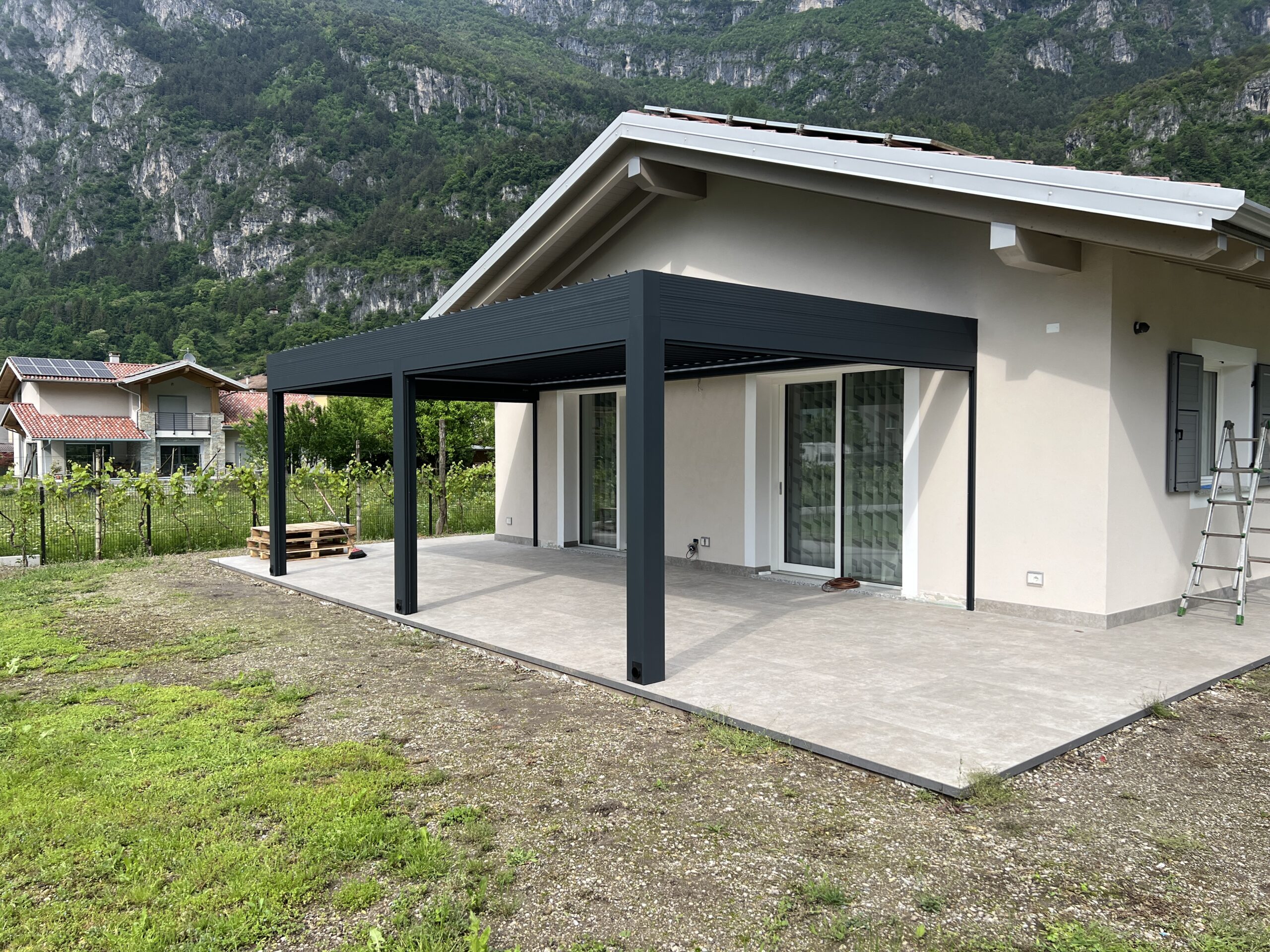 Una pergola illuminata si vive giorno e notte: accessoriabile con il sistema di illuminazione a Led Spot, integrato nei profili frangitratta.